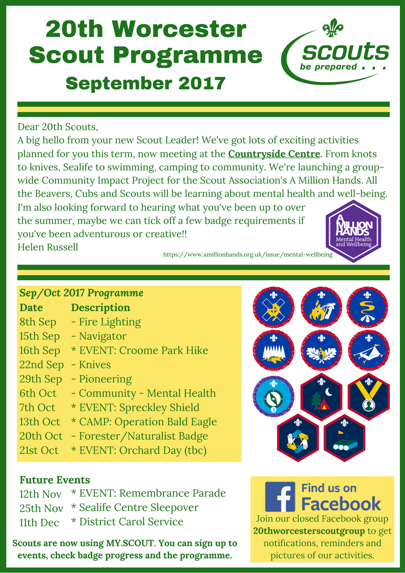 A Scout-led night run by a group of Scouts who would like to help the Troop understand more about Autism. We will also be running bases on mindfulness, tips on reducing stress and anxiety and probably a bit of paracord crafting because, you know, paracord!!